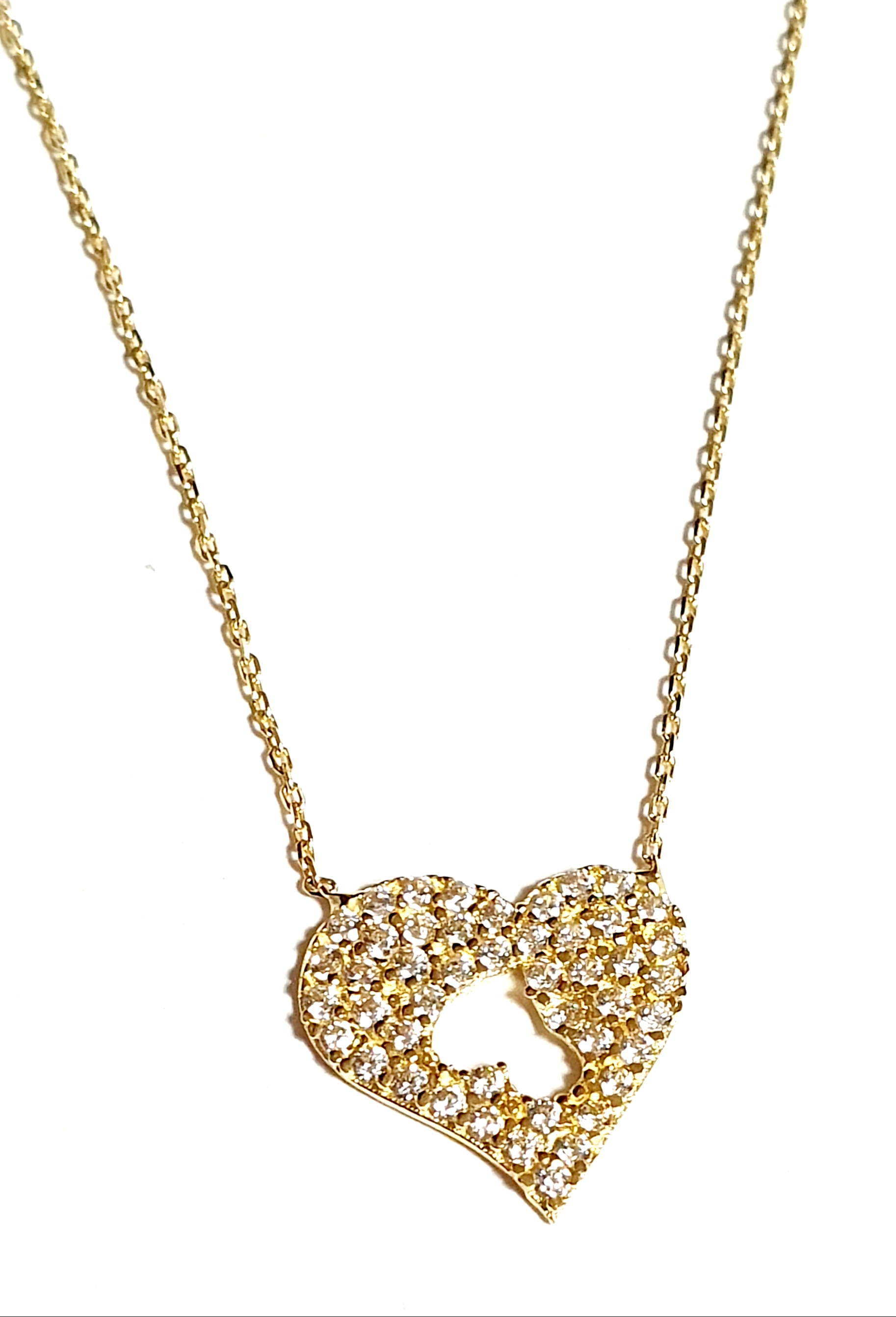 585/-14K GOLD HERZ Collier mit schönen Zirkonia